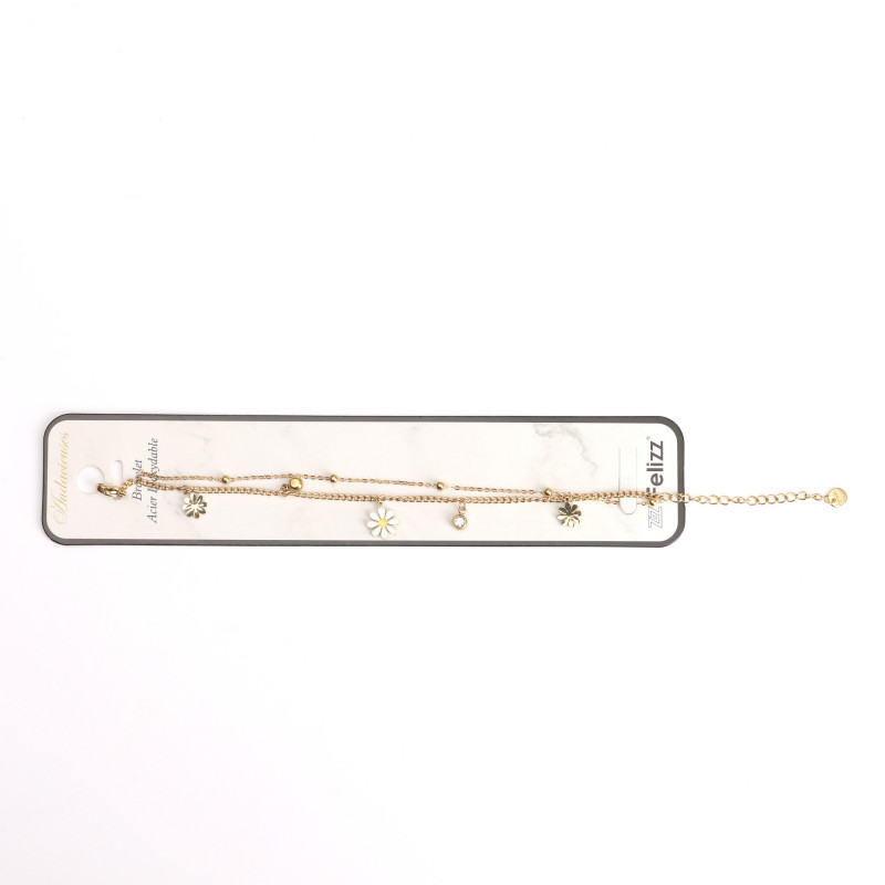 Pulsera de acero inoxidable chapado en oro con flores y brillantes