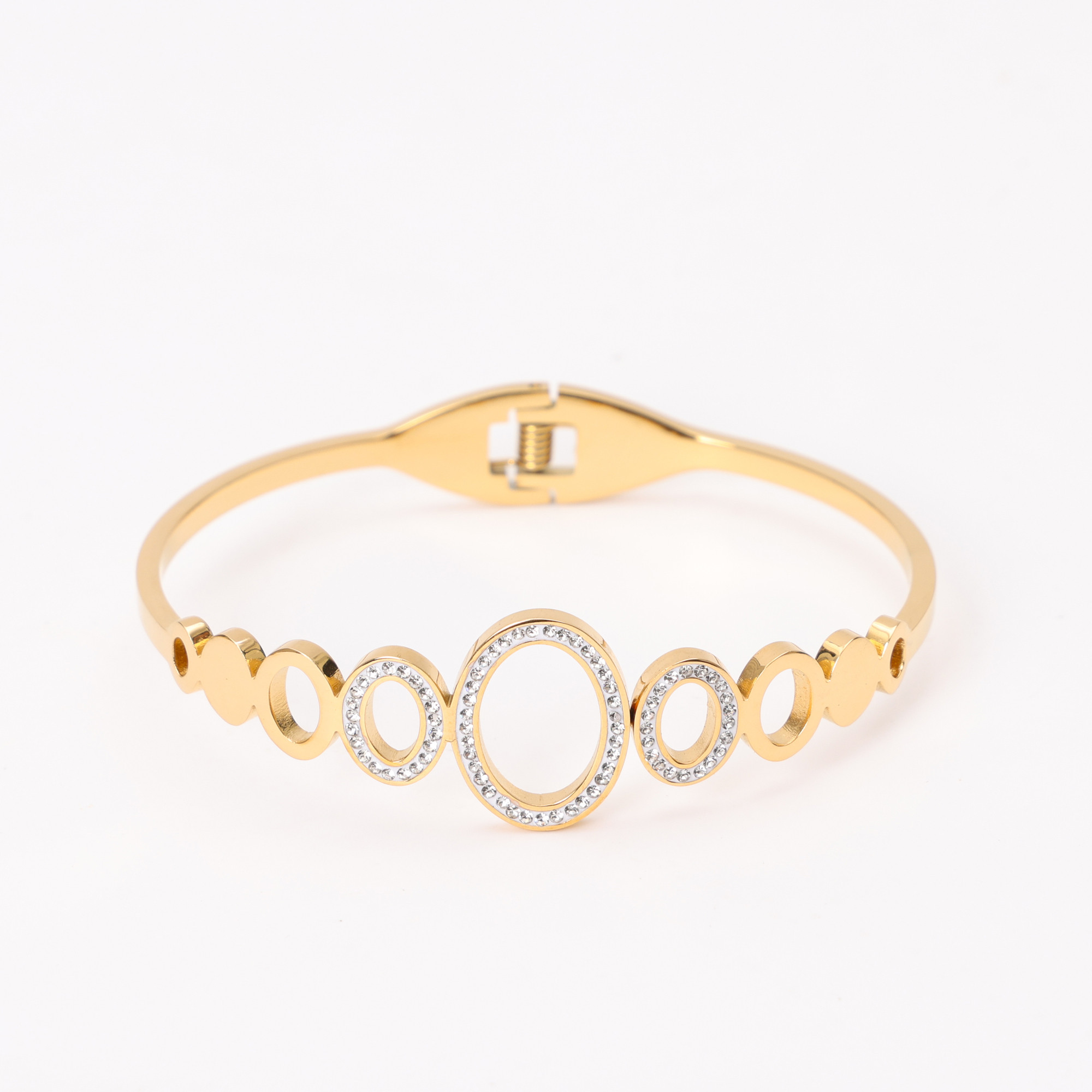Pulsera de acero inoxidable chapado en oro con banda de brillantes