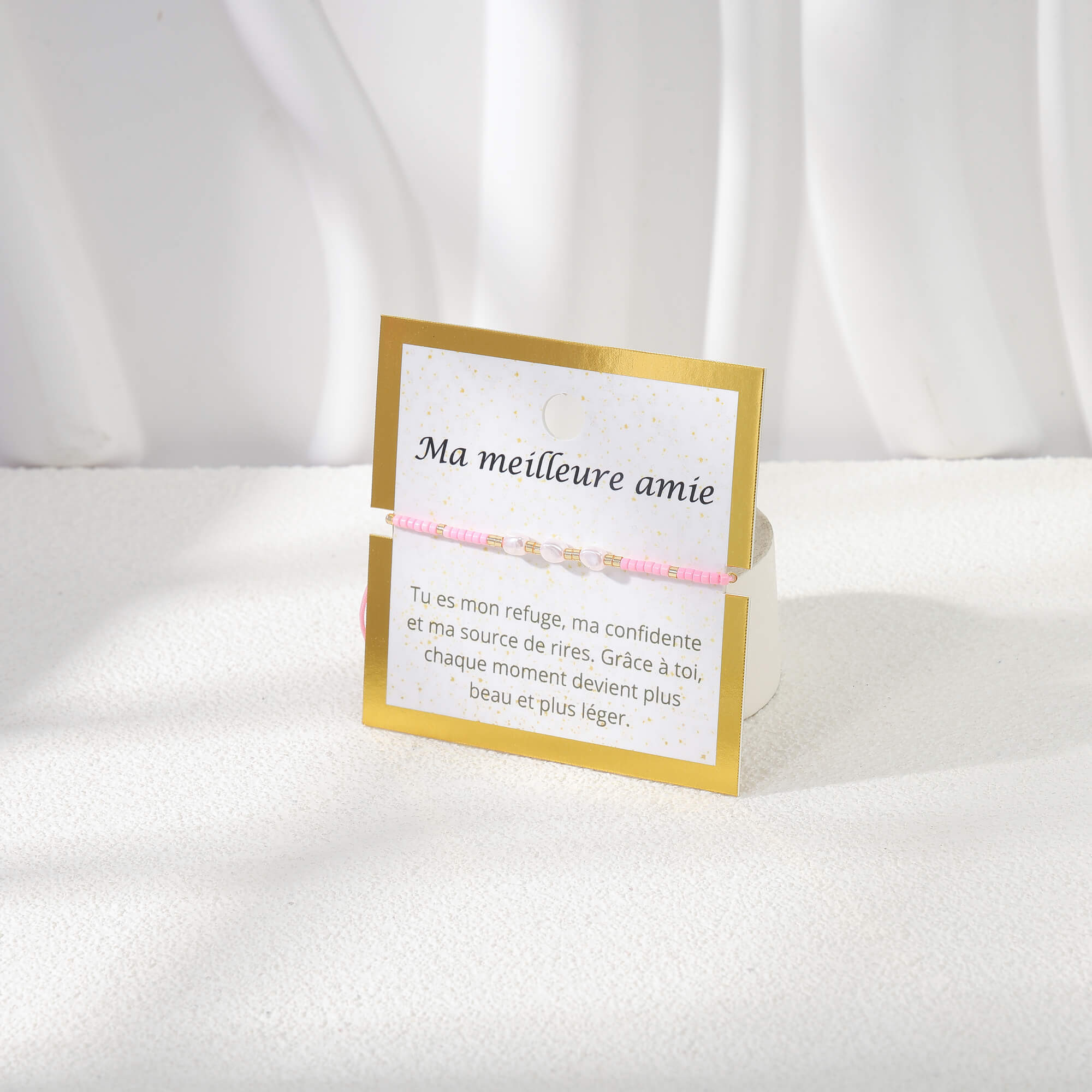 • Pulsera en tarjeta con delicado mensaje