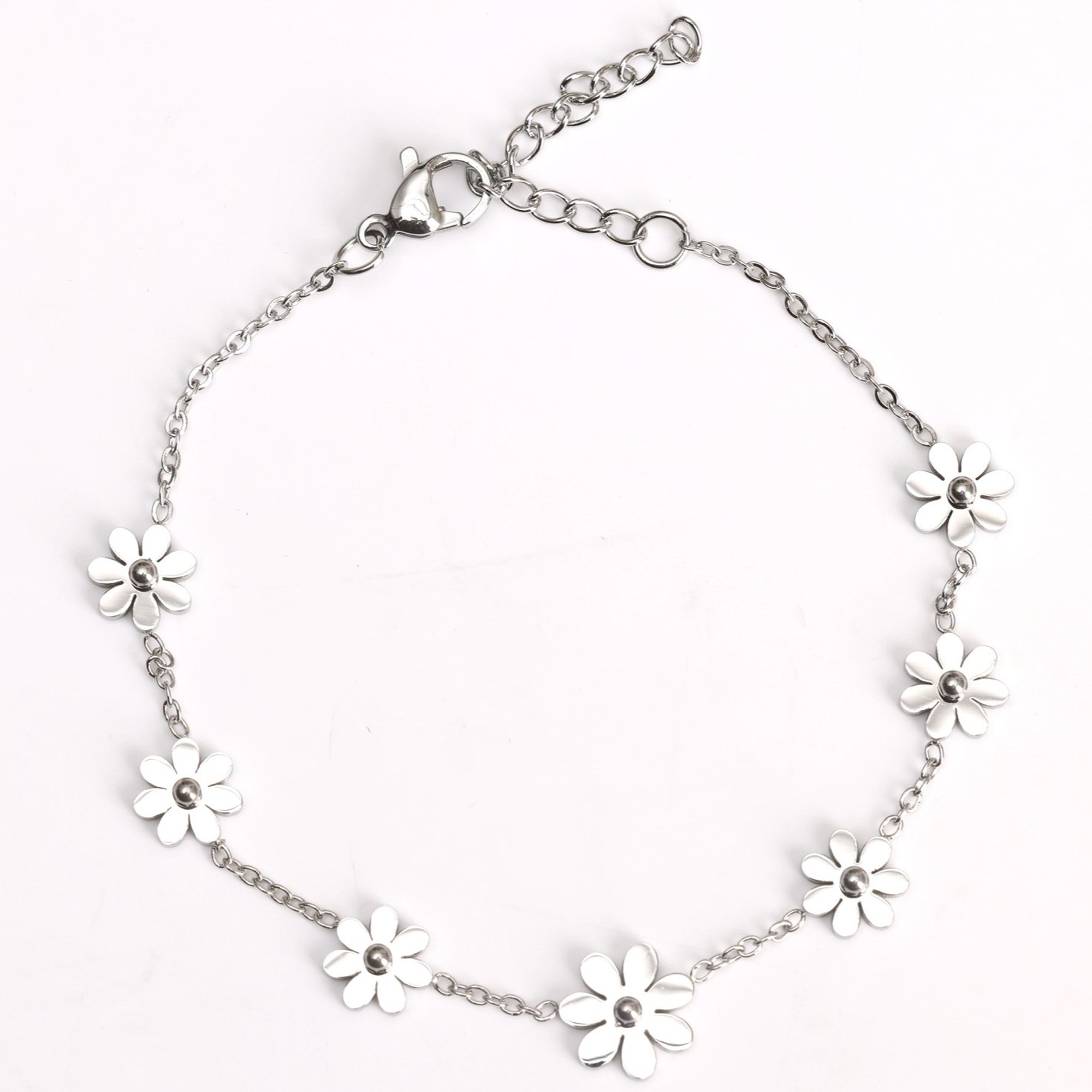 Bracelet acier inoxydable argenté fleurs