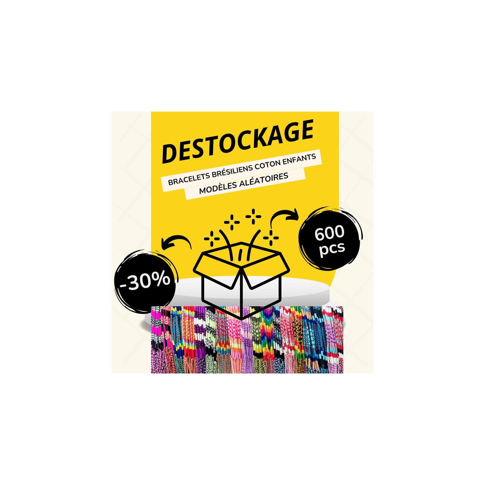 Pack Destockage Bracelets brésiliens coton enfants – 600 pièces