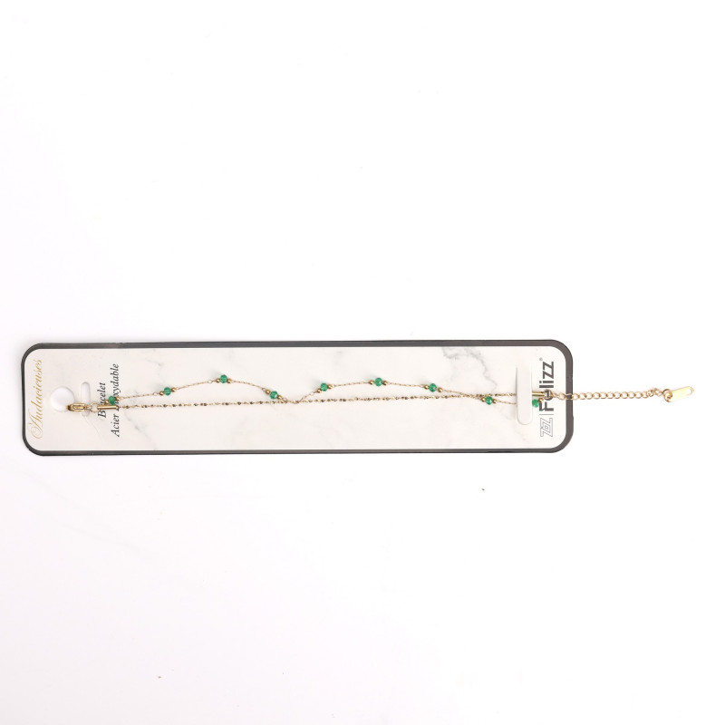 Bracciale in acciaio inossidabile placcato oro e rivestito di perle verdi