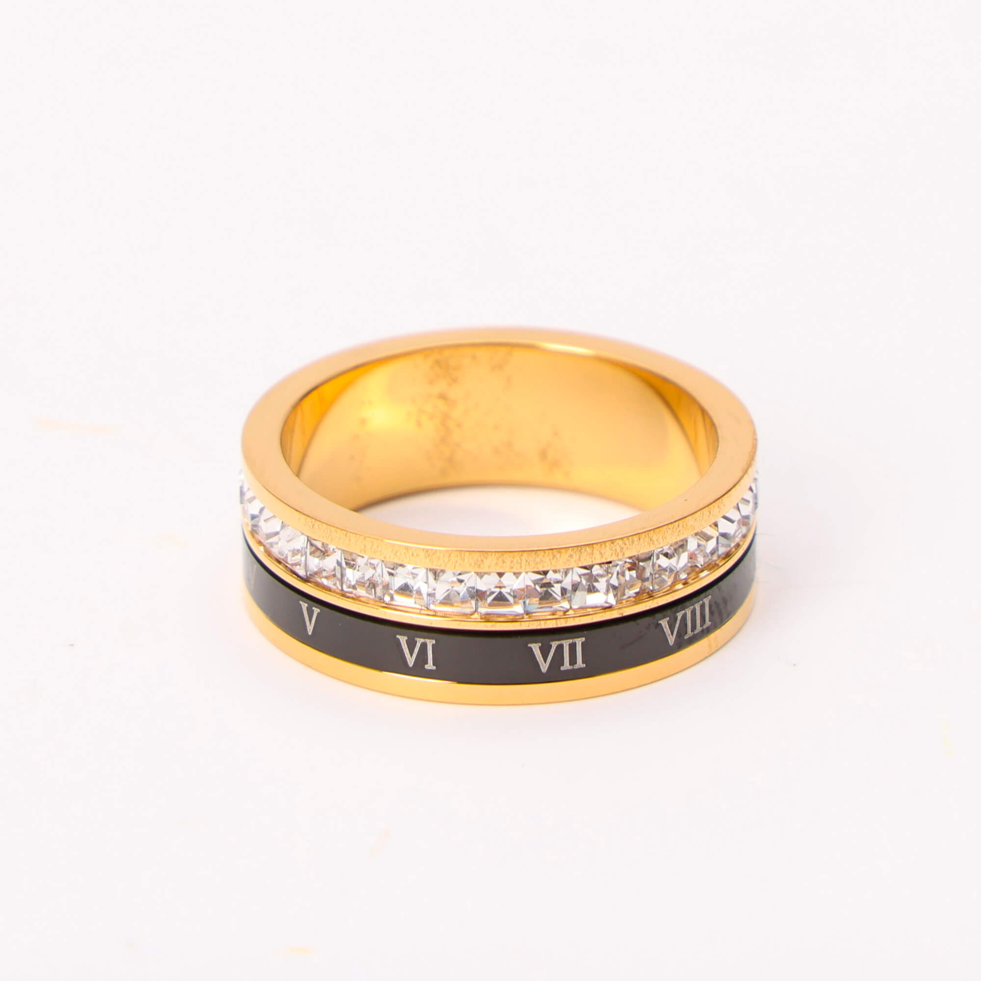 Anello in acciaio inox placcato oro con numeri romani