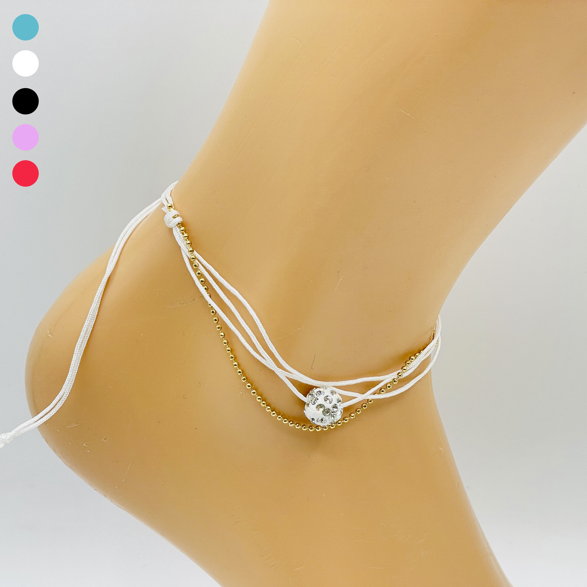 Le cavigliere di cotone colorate e di tendenza sono disponibili presso il vostro grossista di gioielli Felizz. Queste cavigliere sono realizzate in diversi materiali (perle, pietre, conchiglie). Le cavigliere sono molto popolari tra le donne in estate e sono perfette... come gioielli per rendere splendidi i piedi abbronzati. Il vostro grossista Felizz avrà per voi i modelli più belli di bigiotteria. Ce n'è per tutti i gusti.