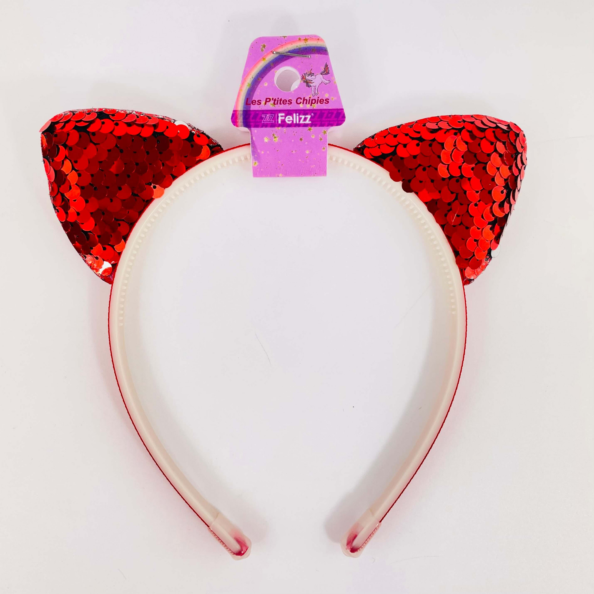 Set di cerchietti glitterati con orecchie di gatto rosse