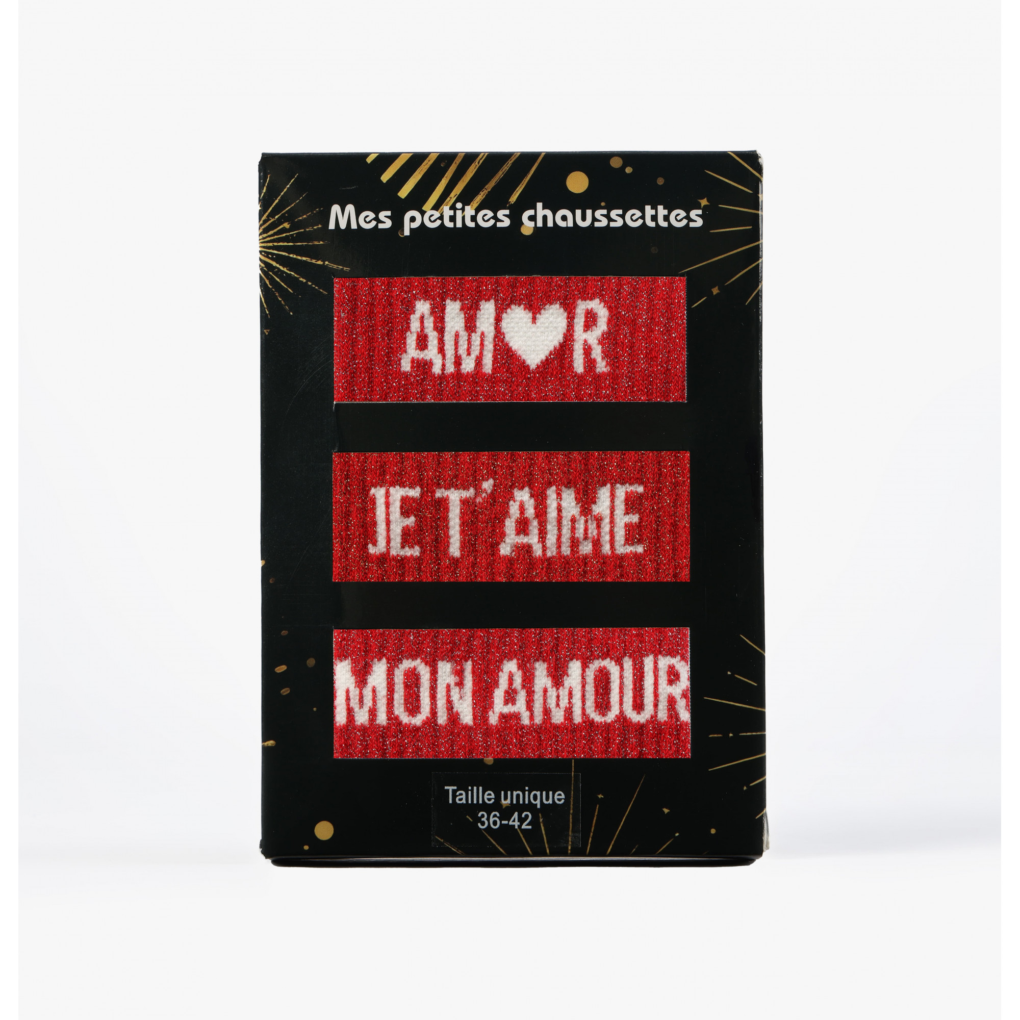 - Calzini con messaggio in paillettes in scatole da 3 paia